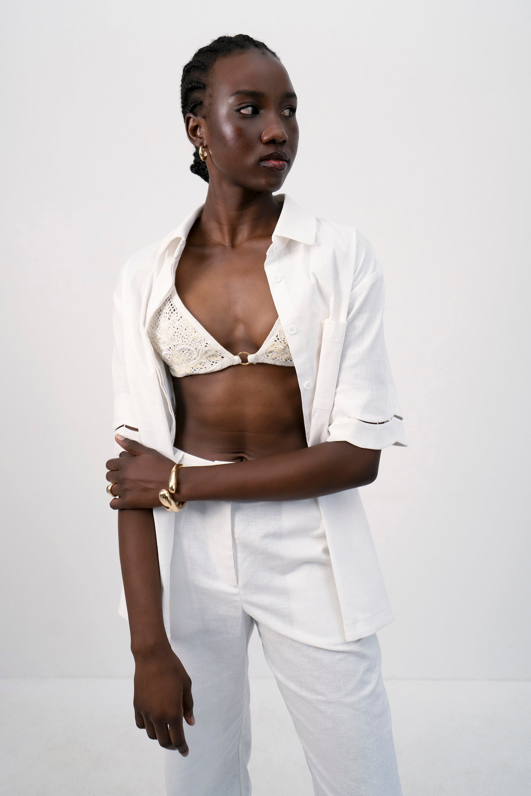 Each piece honours slow fashion: mindful materials, artisan techniques, enduring silhouettes, and a fit that moves with you from sea to soirée.