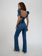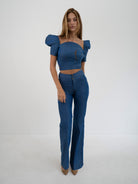 The sleek straight-leg design fit of the STORM RIDER PANT is crafted to enhance your figure and embody the free-spirited aesthetic, combined with the finesse of tailoring. Crafted from 100% Cotton Chambray fabric, these pants offer a sleek, flattering fit while ensuring comfort. The decorative stitching and pockets add both functionality and a touch of informal charm, while the multi-seamed waistband with a two-button closure provides an impeccable contouring.