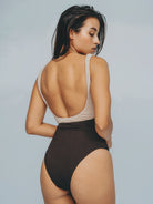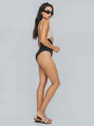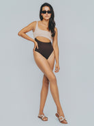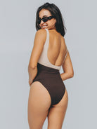 The dual tone of chocolate brown and cream adds a textural contrast, drawing the eye to the narrowest point of the body, and giving shape where it matters most. Elegant, effortless, enduring.